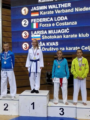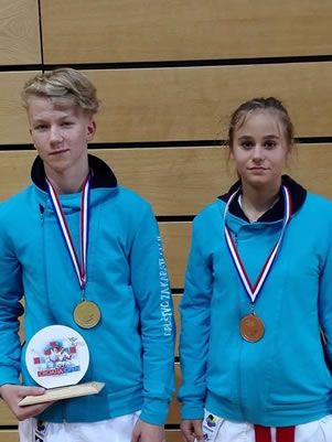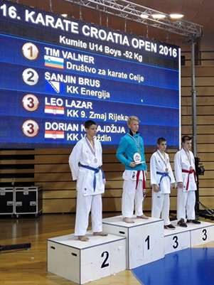 za karate Celje na tekmovanju nastopili: Tjaša Kvas, Tim Valner,